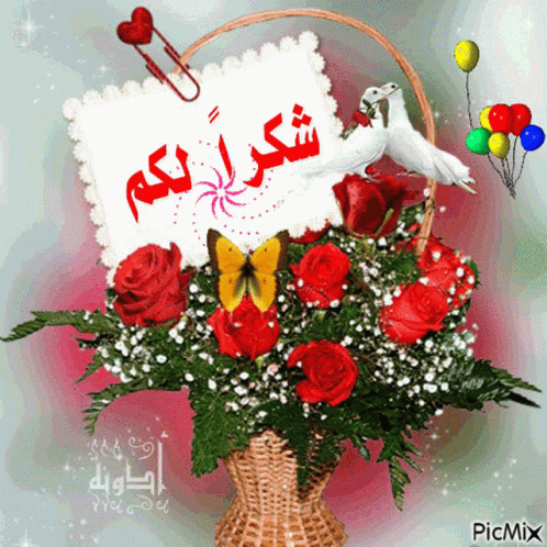 A beautiful bouquet of red roses with a butterfly, dove, and a 'Thank you' message card.