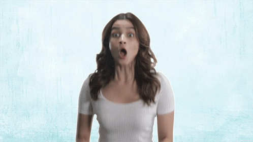 Alia Bhatt's shocked and surprised reaction, with her hands covering her mouth in disbelief.