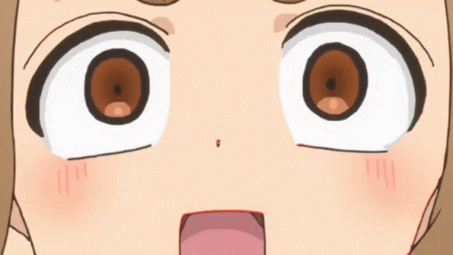 Takagi San's wide-eyed, shocked expression captured in a close-up shot, showing intense surprise.