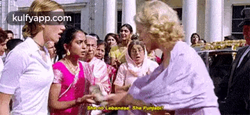 A woman in traditional attire declares 'She no Lebanese. She Punjabi!' during a heated confrontation in a crowd.