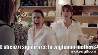 Michela Giraud and Paola Cortellesi in a heated shopping moment, exclaiming 'E sticazzi signora ce lo vogliamo mettere?'
