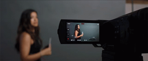 Gina Rodriguez on camera during a professional video shoot, holding a prop.