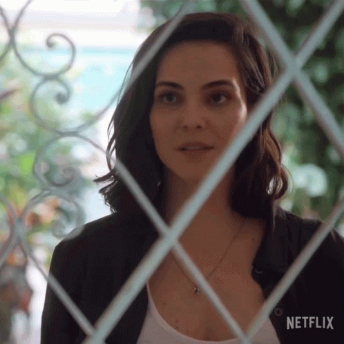 Tainá Müller, as a detective, shows her police badge through a fence, in a scene from a Netflix series.