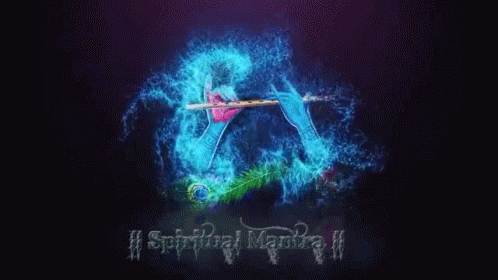 Animated depiction of Shri Krishna playing the flute, surrounded by spiritual energy, with 'Spiritual Mantra' text. Featuring Trisha Parui.