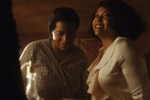 Shug Avery shows Celie her reflection with lipstick, leading to a moment of surprise and laughter in The Color Purple.