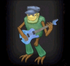Shugarock, a character from My Singing Monsters, plays a light blue bass guitar.