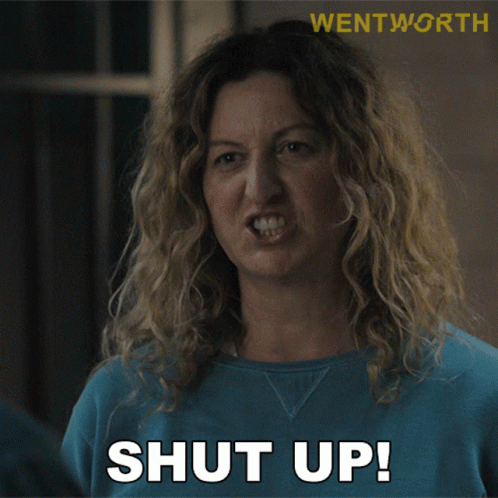 Lou Kelly (Kate Box) from Wentworth yells 'Shut Up!' with an intense expression.