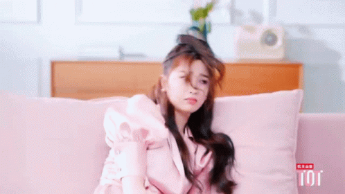 Yu Shuxin, also known as Dearshx, looks pensive in a pink dress on a pink couch, with Chinese captions.