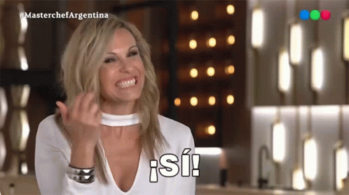 Denise Dumas excitedly exclaims 'Yes!' on Masterchef Argentina, celebrating a moment of joy.