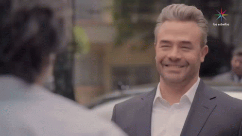 Mexican actor Sergio Sendel smiles and nods, appearing happy, with the Las Estrellas logo visible.