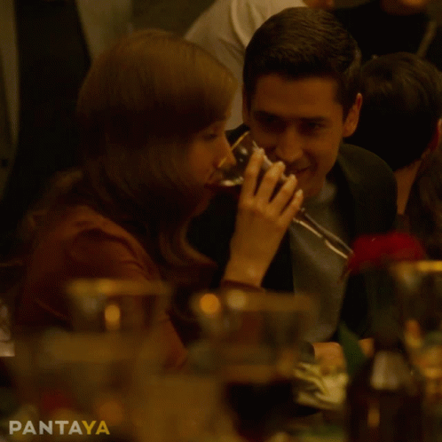 A man and a woman share a drink at a table, enjoying a moment together from the series Sí Malayerba.
