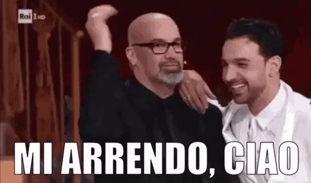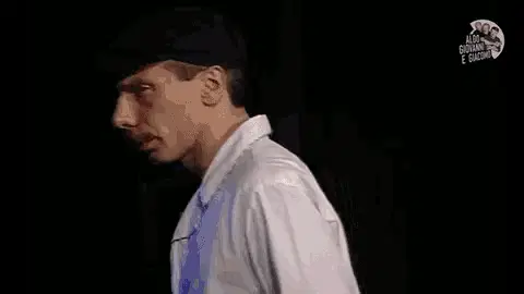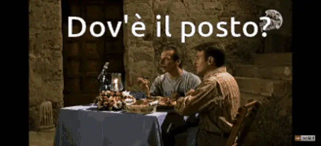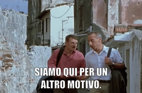Aldo and Giovanni Storti from Aldo Giovanni e Giacomo walking down a street with the caption 'We are here for another reason'.