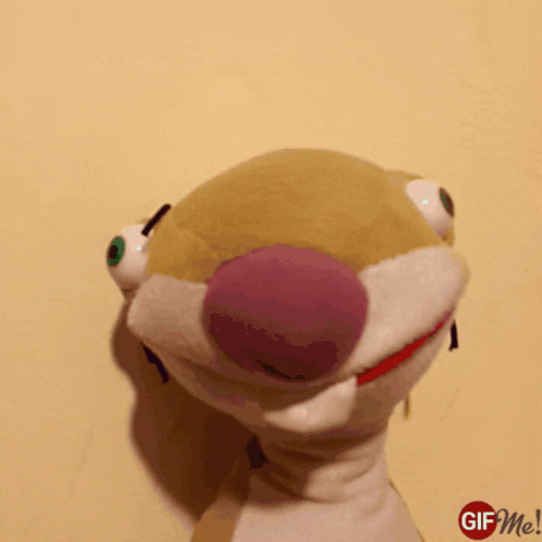 Sid Ice Age toy puppet, a stuffed animal with a purple nose and large eyes, moving its head slightly.