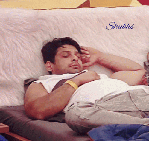 Sidharth Shukla relaxing on a white furry couch, possibly sleeping, during his time in Bigg Boss 13.