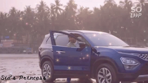 Sidharth Shukla enjoying a moment with his blue SUV, with 'Sid's Princess' visible on screen.