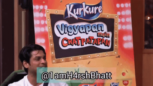 Siddharth Shukla energetically performs in front of a Kurkure ad during Bigg Boss Season 13, watched by others.
