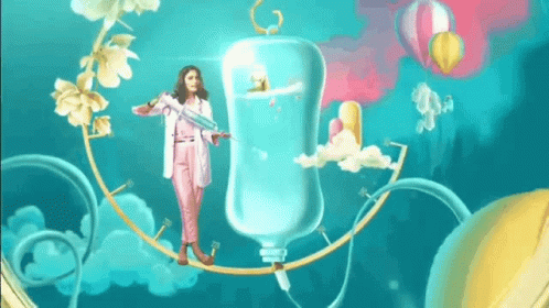 Sidisha Sanjivani, a doctor, holds a syringe while balancing in a vibrant, animated medical setting.