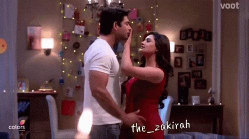 Sidharth Shukla and Sidra share a romantic moment, with the woman gently touching the man's face in a cozy room.