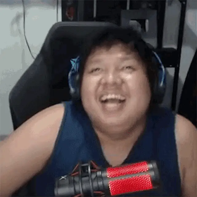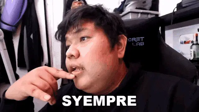 Trinhil, wearing headphones, enthusiastically says 'Sige Sir!' in front of a computer.