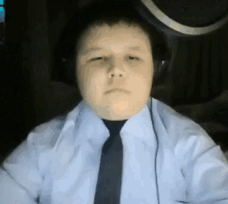 A young boy wearing headphones and a tie, embodying the 'Sigma 5opka' meme with a serious expression.