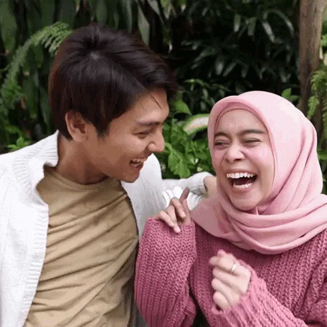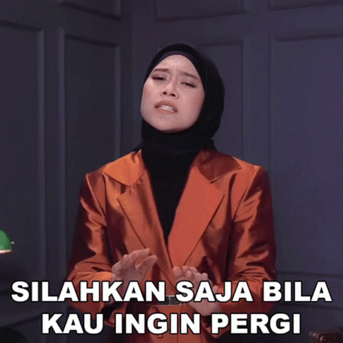 Lesti delivers an emotional performance of her song 'Silahkan Saja Bila Kau Ingin Pergi', wearing a hijab and orange jacket.