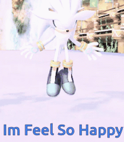Silver The Hedgehog floats happily with the caption 'Im Feel So Happy'.