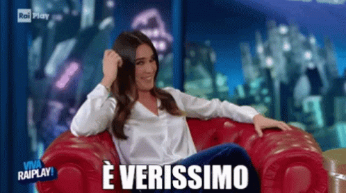 Silvia Toffanin sitting in a red chair, smiling, with 'È Verissimo' on screen, from her TV show.