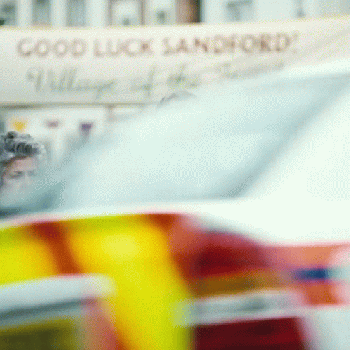Judges from Hot Fuzz, a film starring Simon Pegg and Nick Frost, stand before a 'Good Luck Sandford!' banner.