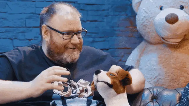 Simon Honeydew from Yogscast's Peculiar Portions making expressive hand gestures.