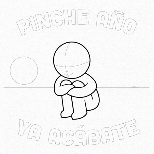 Drawing of a person sitting, expressing frustration with the year, 'Pinche Año Ya Acábate'.