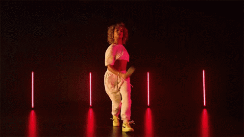 Dani Leigh dances energetically in a white crop top and sweatpants as money falls around her on a dark stage.