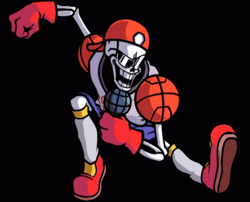 Papyrus from Undertale, in his Friday Night Funkin' basketball mod outfit, intensely rapping into a microphone.