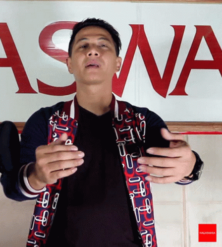 Delon performs 'Sini Aku Peluk Memeluk' with expressive gestures in front of an ASWA sign, representing Nagaswara.