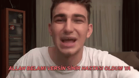 A young man in a white shirt expresses distress, with the Turkish caption 'MAY ALLAH CURSE ME, I BECAME A NERVOUS PATIENT'.