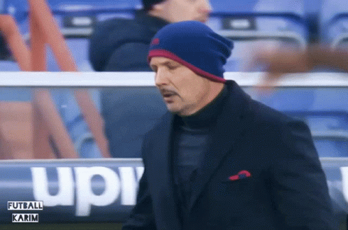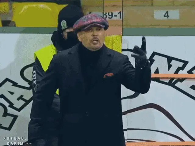 Sinisa Miha, coach of Bologna, shows intense passion and excitement on the sidelines during a match.