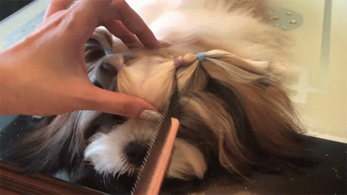 Paningning the Shih Tzu gets her hair combed and groomed, looking adorable.