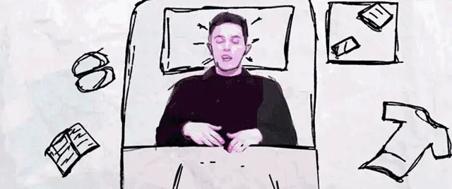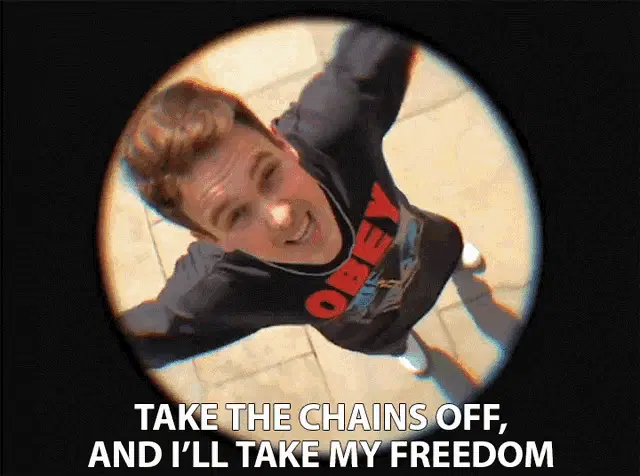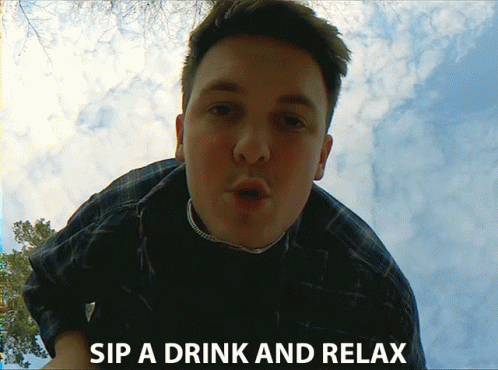 A man in a plaid shirt encourages viewers to sip a drink and relax, promoting a calm and easygoing mood.