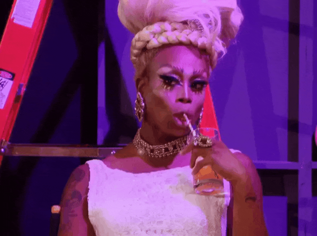 Monique heart sipping tea drag
