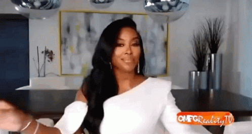 Kenya Moore sips her drink with a sassy expression, looking glamorous in a white dress.