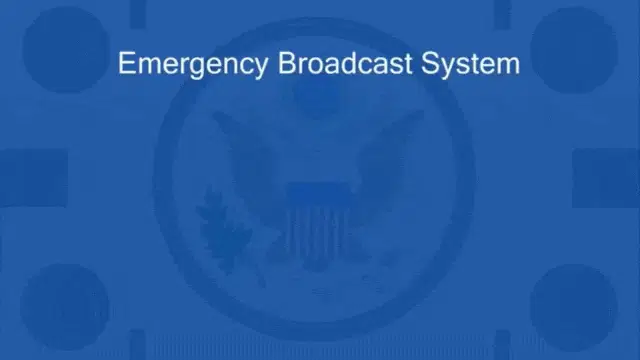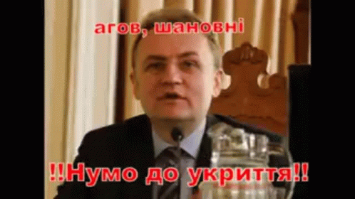 A man in a suit and tie urgently calls for people to go to a shelter during a siren alarm.
