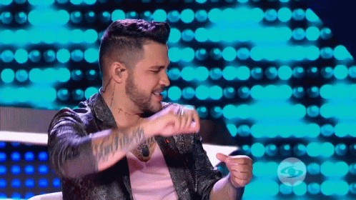 Jessi Uribe on Caracol TV's Yo Me Llamo, wiping his face and smiling on stage.