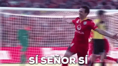 Isaias Sanchez celebrates a goal for Adelaide United with his iconic 'Sí Señor Sí' gesture.