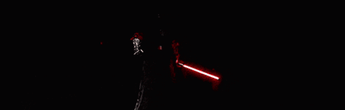 Iconic Sith Lords, including Darth Vader, wield red lightsabers in a dark room.