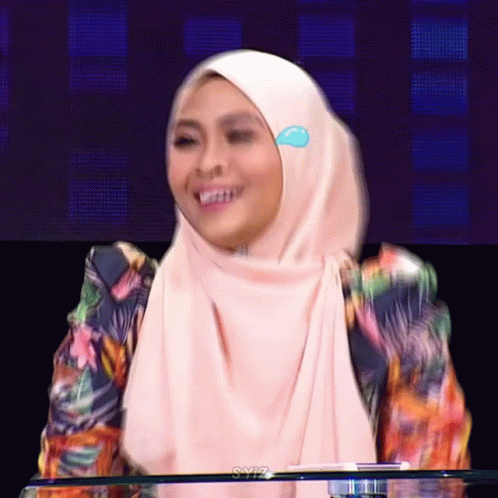 Siti Nordiana laughs heartily on I Can See Your Voice Malaysia, wearing a floral top and pink hijab.