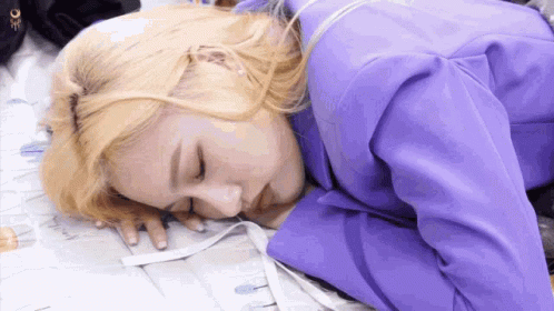 Dreamcatcher's Siyeon Lee Siyeon resting in a purple jacket, looking down with rings on her fingers.