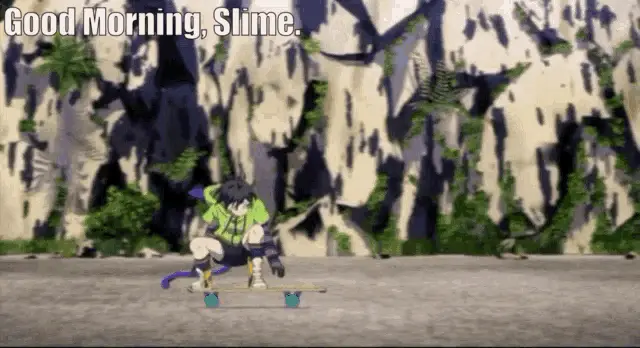 Langa Hasegawa from Sk8 the Infinity on a skateboard with 'OHAYO juju' text overlay.