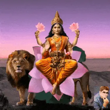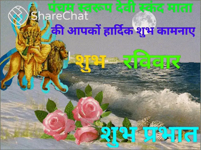 Devotional image of Maa Skandamata, the fifth form of Navdurga, riding a lion, with text 'Salutations to Mother Skandamata' and 'PRASHANT GANGWANI'.
