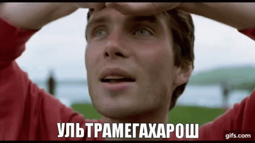 Cillian Murphy as Jim from '28 Days Later' in a meme with Russian text 'УЛЬТРАМЕГАХАРОШ' (ULTRAMEGAHAROSH).