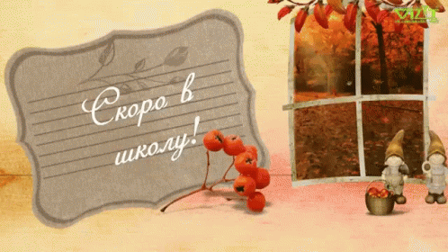Festive autumn image with 'Soon to school!' sign, rowan berries, and gnomes, marking September 1st.
