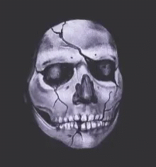 A striking visual transformation from a cracked, grey skull to a vibrant, floral sugar skull.